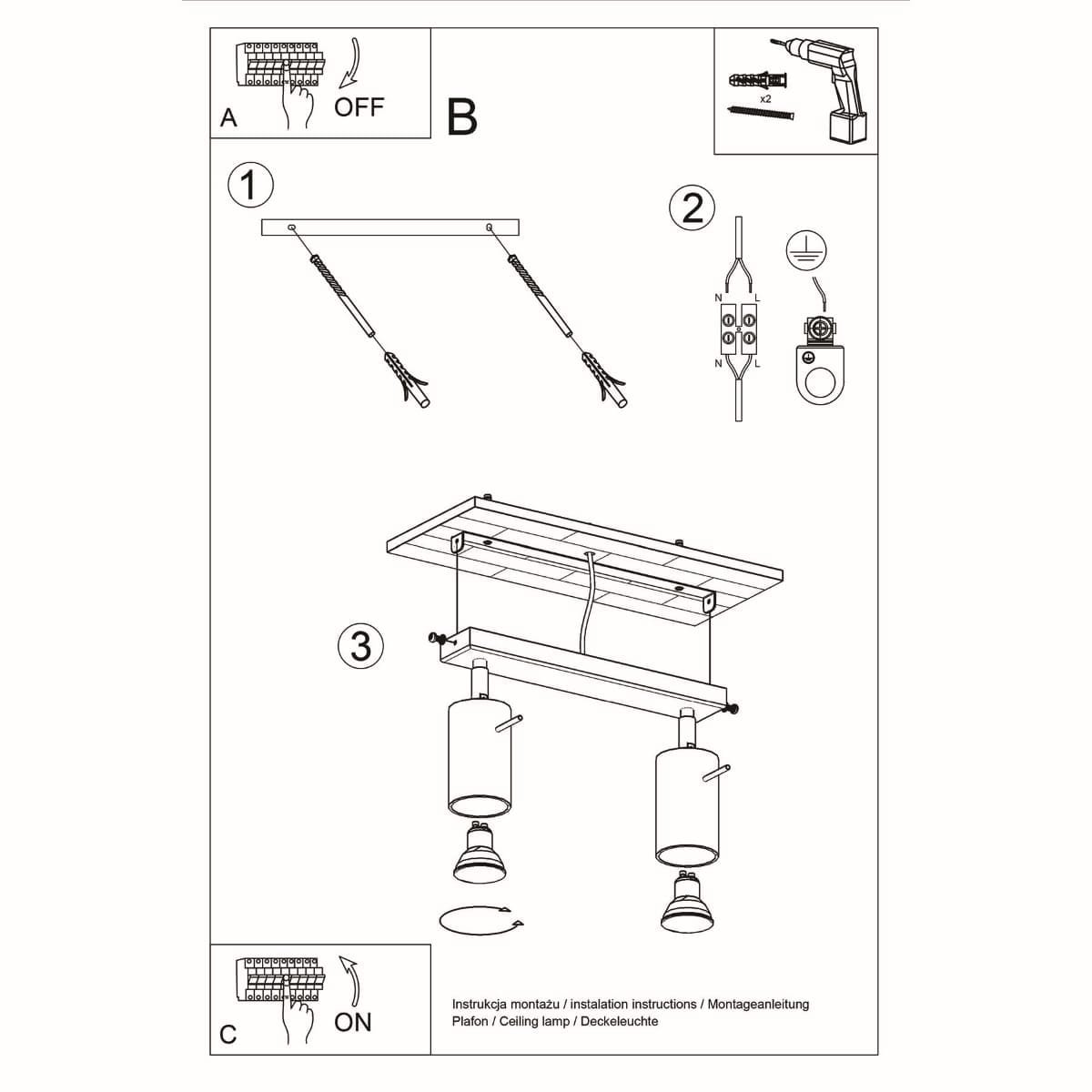 Two GU10 fittings (bulbs purchased separately) accept readily available spotlight bulbs. Choose warm white for welcoming farmhouse ambience, or opt for brighter task lighting where food preparation and practical work demand good visibility.