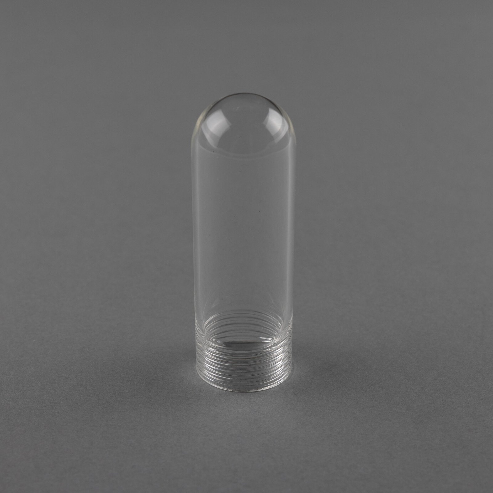This is a clear 7.5cm tall threaded tube glass lamp shade. Its threaded neck is 2.5cm in diameter.