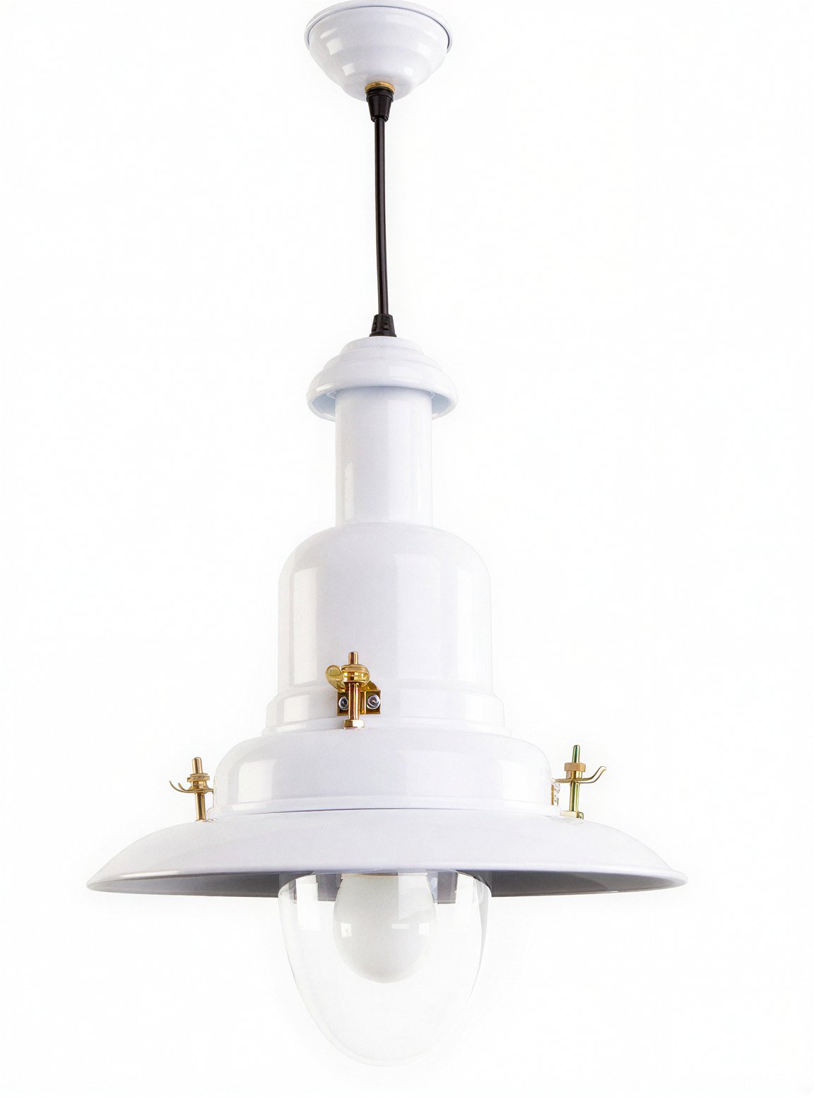 This extra large fisherman’s pendant ceiling light is hand-spun from aluminium at J D Burford’s South Wales workshop, then finished in chalk white powder coating for lasting durability. Each light is individually crafted using traditional metalworking techniques perfected since the 1950s, creating a quality that’s increasingly rare in today’s mass-production world.