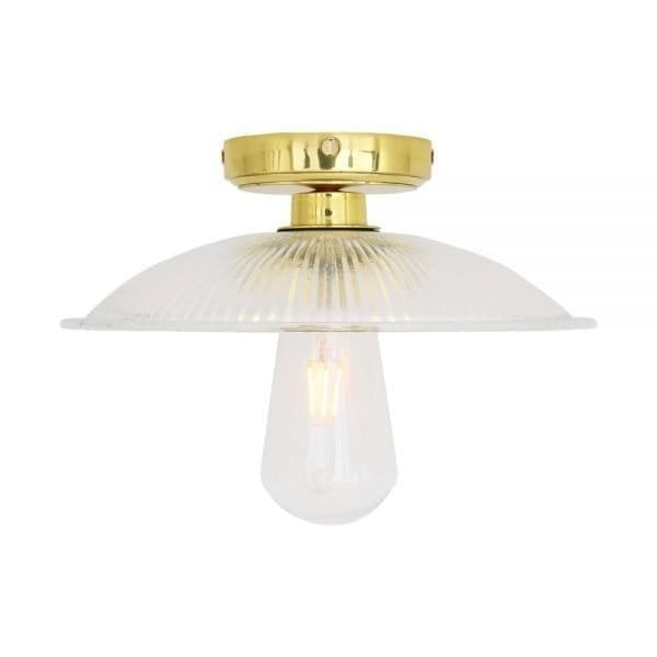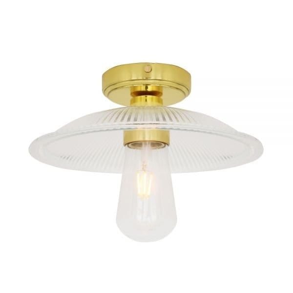 The Gal Simple IP65 Holophane Bathroom Ceiling Light blends simplicity with tradition. Its shallow glass lamp shade, made from durable holophane, ensures a timeless look. Available in a variety of finishes including antique brass, polished brass, and matte black, it easily complements any bathroom design.