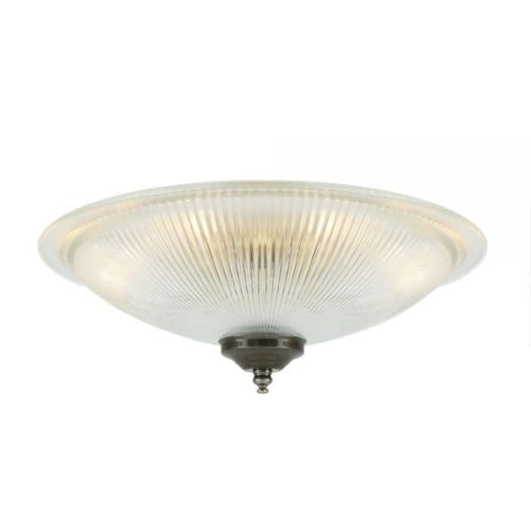 Transform your small spaces with the Nicosa Shallow Holophane Flush Ceiling Light. Perfectly suited for bathrooms, kitchens, or pantries, this stylish flush mount light features a sophisticated Holophane glass shade that refracts light beautifully, creating a warm and inviting atmosphere. With a compact height of 8.5cm and a width of 30cm, it offers a stylish solution without overwhelming your decor. Experience the effect of multiple light sources as it gracefully illuminates your space.